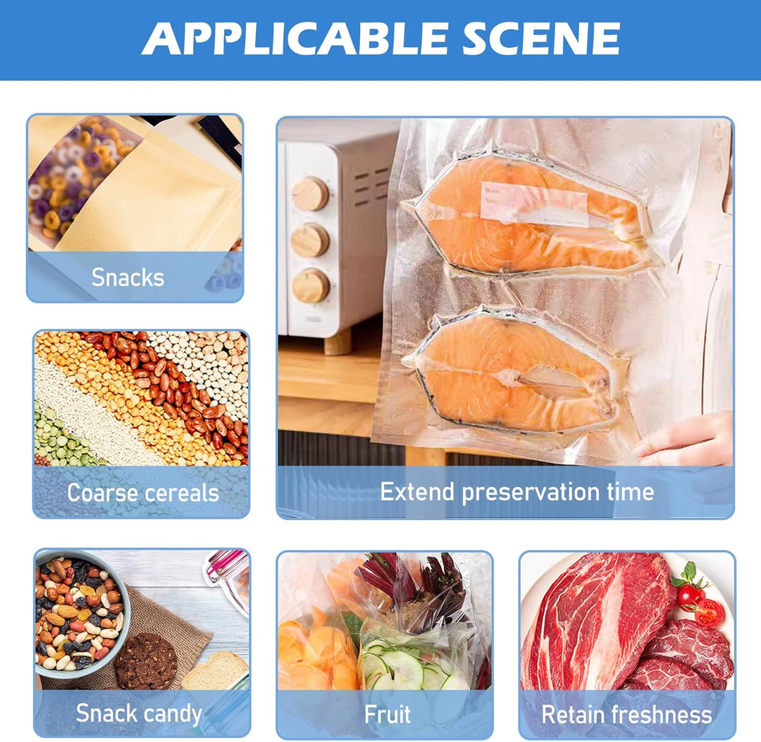 - 【Vielseitige Anwendungsmöglichkeiten】Diese Folienschweissgerät ist ideal zum Verpacken von Schokolade, Keksen, Süssigkeiten, Brot, Nüssen, Snacks, Fleisch, Gemüse und Obst. Sie hält die Lebensmittel länger frisch und spart Zeit und Mühe