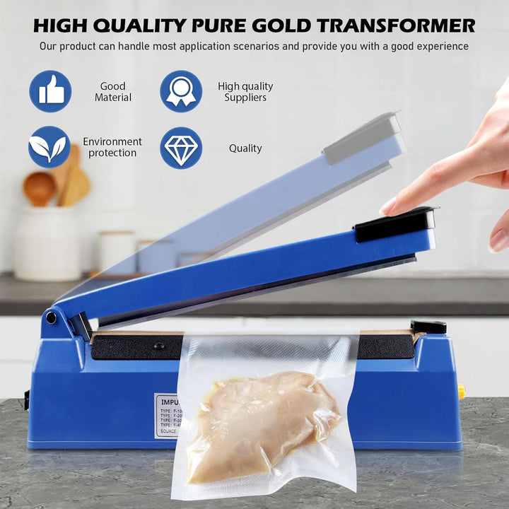 - 【Hochwertiges Material】Der Folienschweissgerät ist mit einem Transformator aus hochwertigem Reinkupfer ausgestattet, der für Langlebigkeit und Stabilität im Einsatz sorgt. Die Heisssiegelmaschine ist mit einer eingebauten Präzisionskreissteuerung