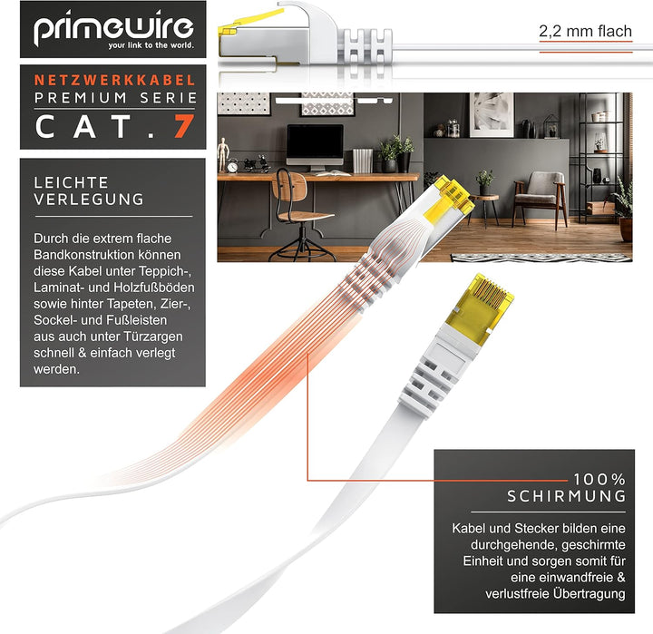 - Primewire 30,0m ( Meter) CAT.7 Netzwerkkabel - Flachbandkabel | Cat7 Rohkabel mit 2 x RJ45 Steckern (abwärts-/aufwärtskompatibel) | Flachband-Netzwerkkabel, Patch-Kabel | Stecker mit Knickschutzhülle | Schirmung: U/FTP | 302445
