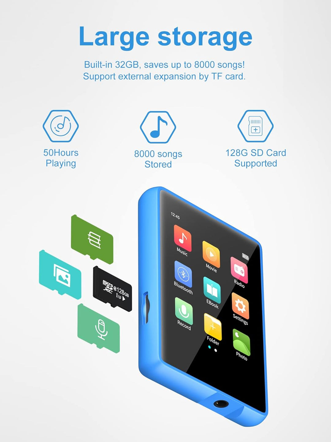 • ♫ Lange Liste von Funktionen: Dieser MP3-Player kann viel mehr als nur Audio abspielen. Sie können auf dem winzigen Touchscreen auch Fotos ansehen, Videos abspielen, FM-Radio hören und E-Books lesen.