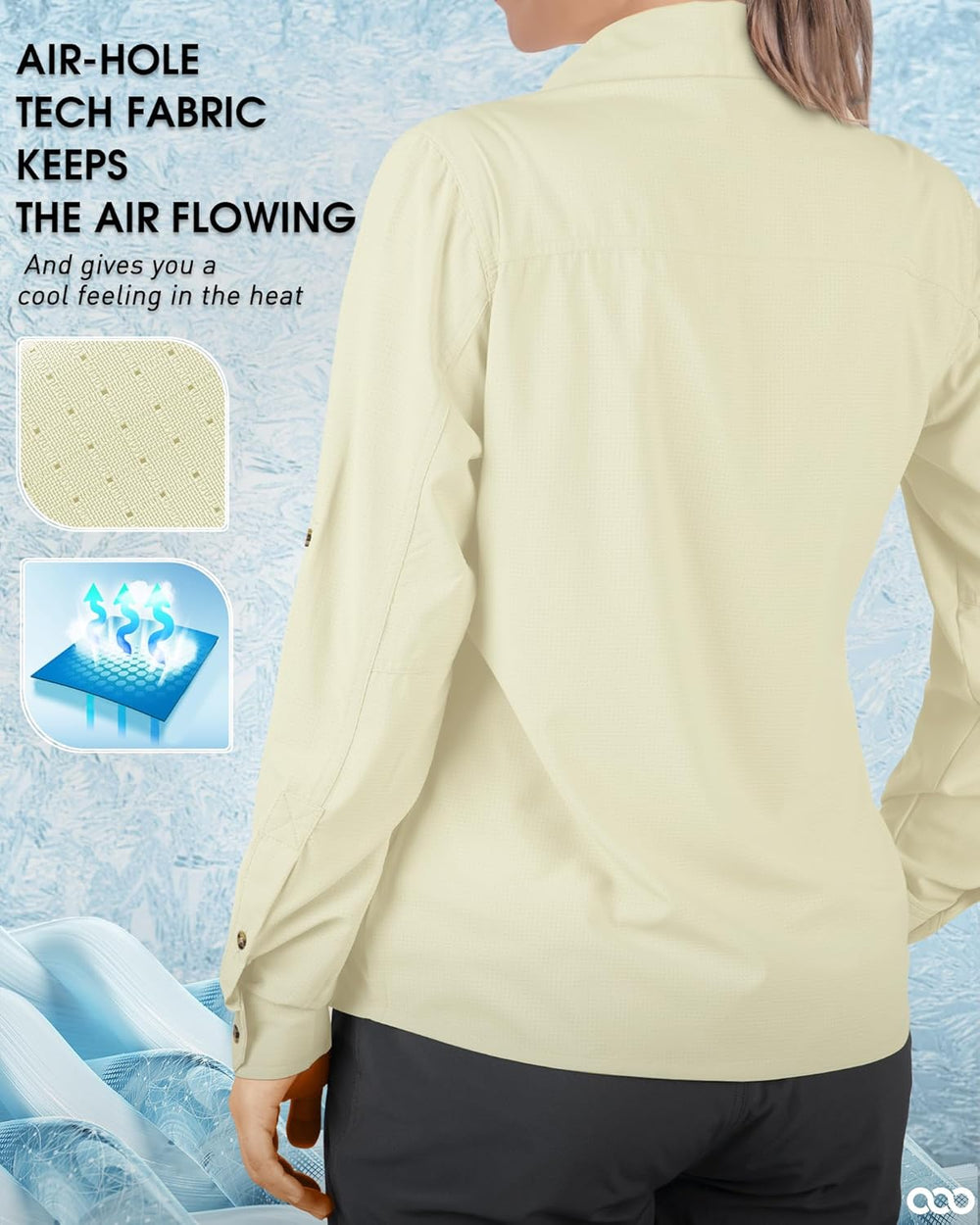 33,000ft Hemd Damen UPF50+ UV Schutz Outdoorhemd Schnelltrocknend Freizeithemd Langarm Funktionshemd