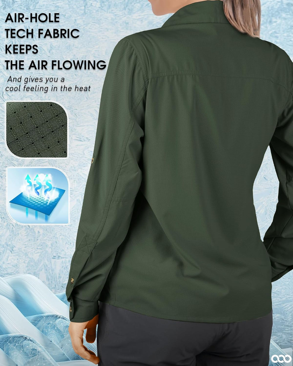 • KONVERTIEREN SIE SIE IN KURZE ÄRMEL-- 33,000ft Frauen Langarm Cabrio-Angelhemden mit Roll-up-Ärmel-Design - Die Tasten am Oberarm zu fixieren, die Ärmel hochgekrempelt, um eine kurze Hülse zu konvertieren, so können Sie eine bequeme Wahl nach der
