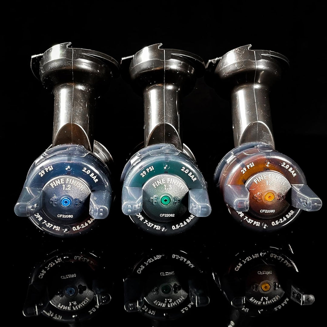 - VIELSEITIG: Verfügbar in drei Grössen (1,2, 1,3 und 1,4) und geeignet für Hochleistungslacke, darunter Klarlacke, wasserbasierte Basislacke, Effektlacke, lösemittelhaltige Farben und andere moderne VOC-arme Lacke.