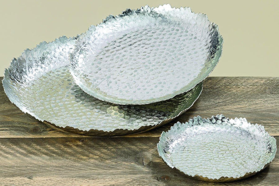 Dapo 3x Hochwertige Weihnachts-Aluminium-Tisch-Dekorations-Teller-Set ANGIE rund D19-25-33cm in silb