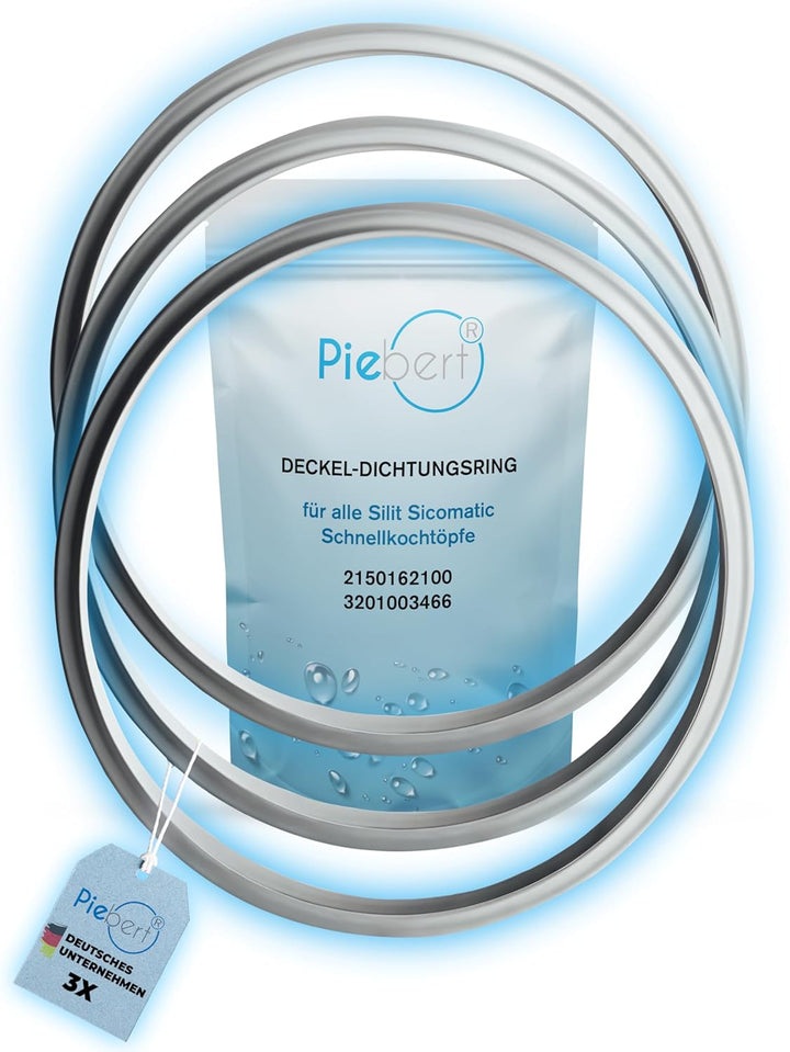 3x Piebert Dichtung 39154 22cm für Silit Sicomatic® Schnellkochtopf Deckel, grau, Silikon, 22cm Inne