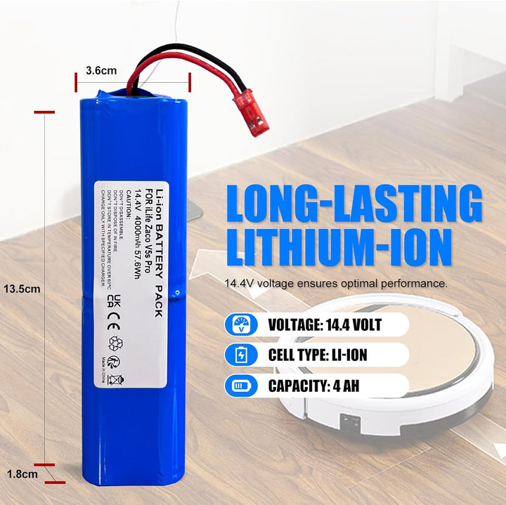 - 【Kompatibles Gerät】 Akku für iLife Zaco Home Cleaner Heimrobote, Ersatz für iLife 18650B4-4S1P-AGX-2. Kompatibel mit modellen: iLife V5s Pro,V5x, V4, V3, V3s Pro, V8s, V40, V50, V80, V85, x750 home cleaner Heimroboter.