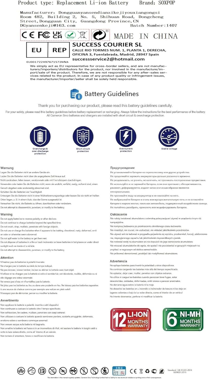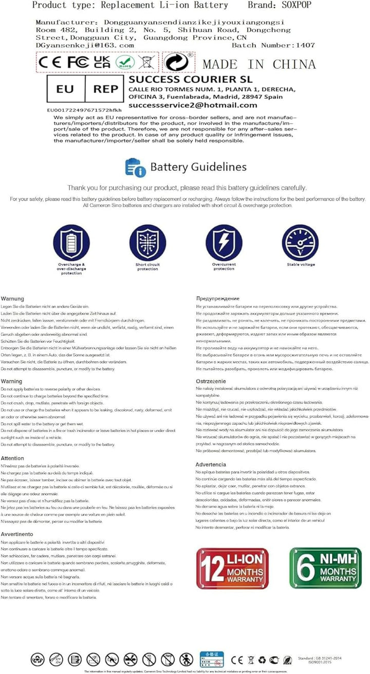- 【Einfach zu installieren und zuverlässige Qualität】 Ersetzt direkt den Akku auf dem Heimroboter der iLife, ohne zusätzliche Werkzeuge. Die Zuverlässigkeit des Produkts wird durch Tests wie FCC, UL, CE, RoHS und andere bestätigt. Es ist mit