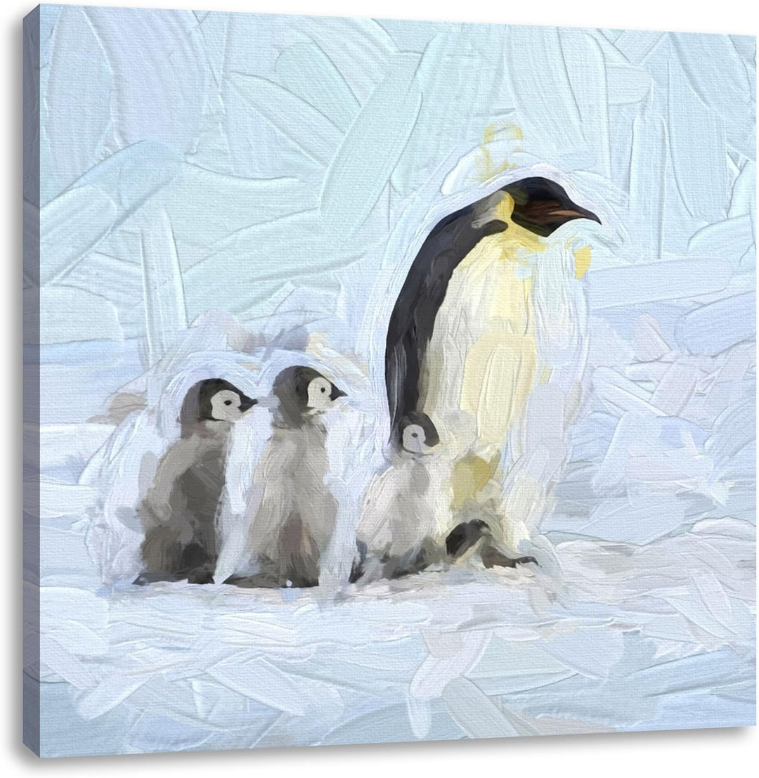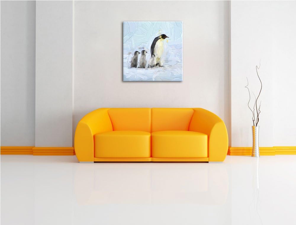 4 Kaiserpinguine im Schnee, Format: 70x70 auf Leinwand, XXL riesige Bilder fertig gerahmt mit Keilra