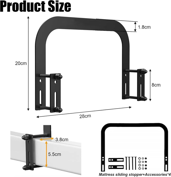 - 【Einfache Installation】Mit dem Matratzenhalter können Sie Ihre Matratzen einfach und sicher auf dem Bettrahmen befestigen. Dadurch wird die Installation erleichtert und die Anpassung an verschiedene Betten ermöglicht.