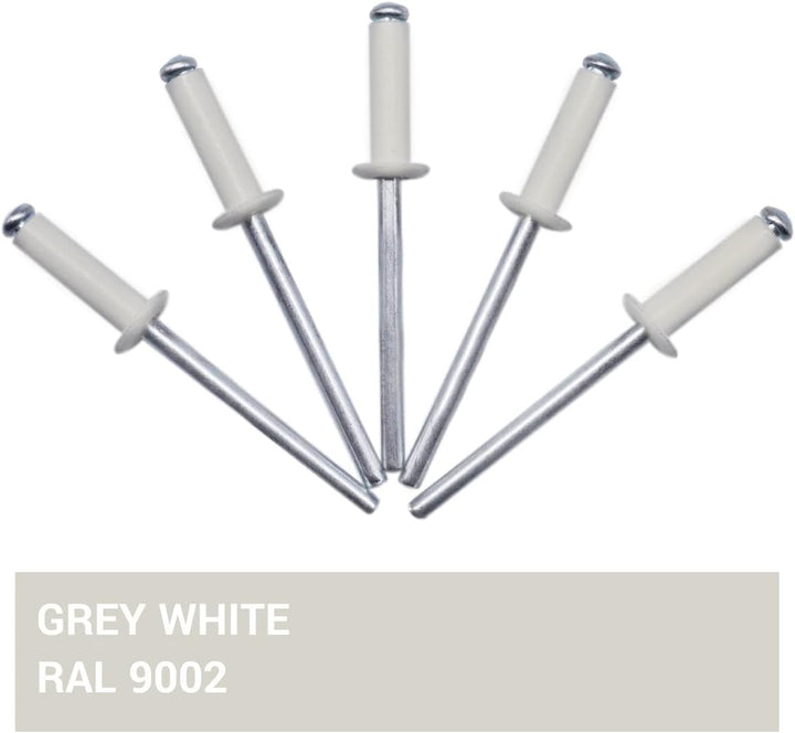 - ✔️ Verpackung: 400 Stück Blindnieten Grösse: 4,0 x 14 mm Aluminiumkörper und Stahldorn DIN 7337 Norm Farbe: grau-weiss (RAL 9002)