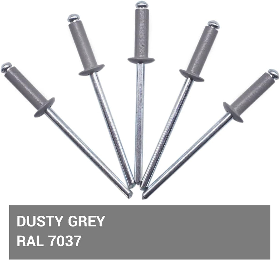 - ✔️ Verpackung: 400 Stück Blindnieten Grösse: 4,0 x 14 mm Aluminiumkörper und Stahldorn DIN 7337 Norm Farbe: Dusty Grey (RAL 7037);