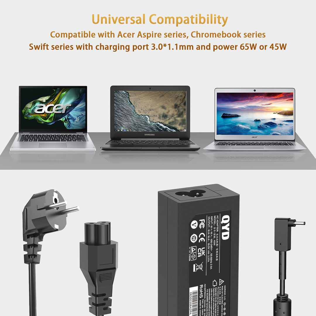 - 【Perfekter Ersatz Acer Aspire Ladekabel Ladegerät 】QYD 45W Laptop Ladegerät für Acer Aspire 3 A115-31, A115-32 A515-55; A515-55G; A515-55T; A515-54-59W2, A515-54-56ST, A514-54-501Z, A515-54-37U3, A515-54-55ZD, A515-54-79J5, A515-54-51DJ,