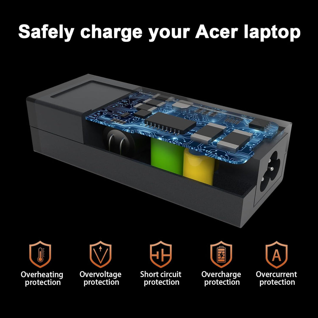 - 【CE-zertifiziert-QYD 45W Aspire Ladegerät hat ein eingebautes Schutzdesign, das Kurzschlüsse, Überstrom, Überspannung und Überhitzung verhindern kann, wodurch das Aufladen des Geräts sicherer wird】QYD 45W Ladegerät Ladekabel für Acer Aspire