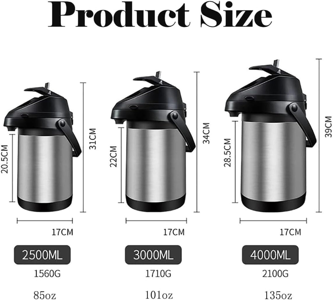 4L Pumpkanne Thermoskanne Isolierflasche mit Pumpe,Pump-Kaffeekanne mit Tragebügel,Pumpkanne aus pol