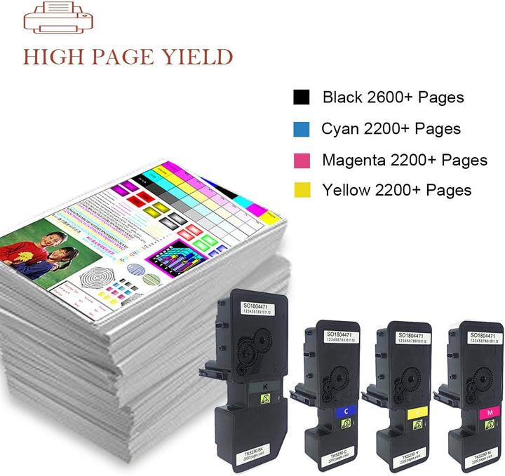 - Inhalt des Pakets: 1x Schwarz (TK5230K), 1x Cyan (TK5230C), 1x Magenta (TK5230M), 1x Gelb (TK5230Y).