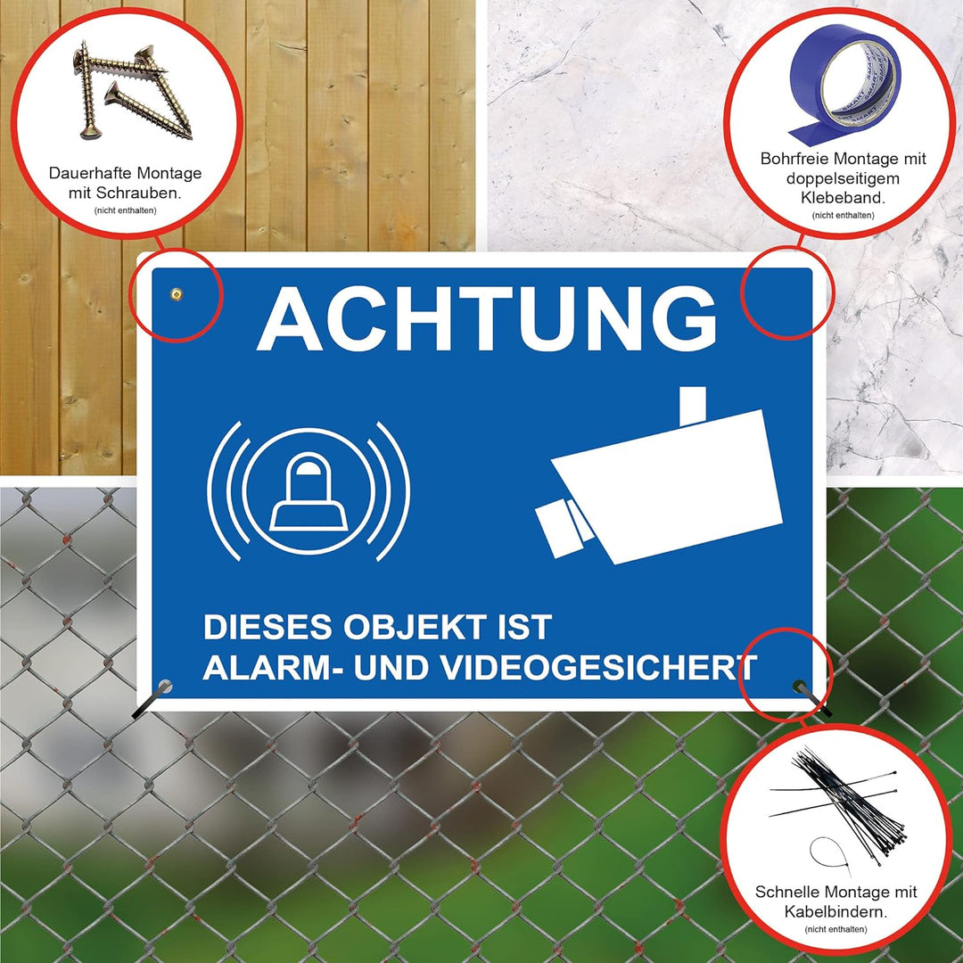 - 5x Dieses Objekt ist Alarm-und Videogesichert Schild 20 x 30 cm