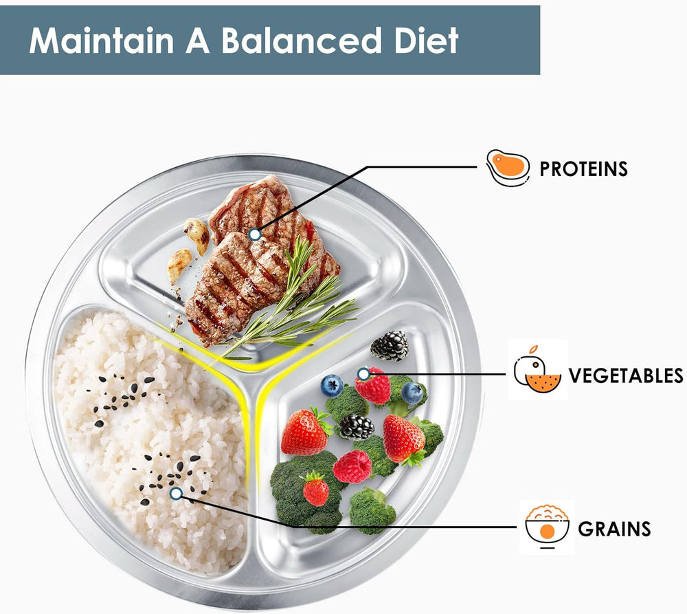 - 3 Verschiedene Essteller: Wir bieten Ihnen 3 Gitter, 4 Gitter und 5 Gitter Teller zur Auswahl, damit Sie die Kontrolle über die richtigen Portionsgrössen für jede Lebensmittelgruppe behalten. Bietet eine ausgewogene Mischung aus gesunden Lebensmitteln.