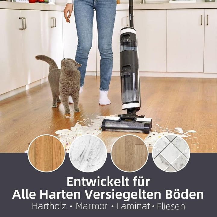 - 👍【Für aller Böden】Fussböden und harte Oberflächen wie Hartholz, Linoleum, Laminat, Fliesen, Marmor, Vinyl, Stein usw. können gereinigt werden, sind jedoch nicht für Teppiche geeignet, da raue Oberflächen die Leistung beeinträchtigen können.