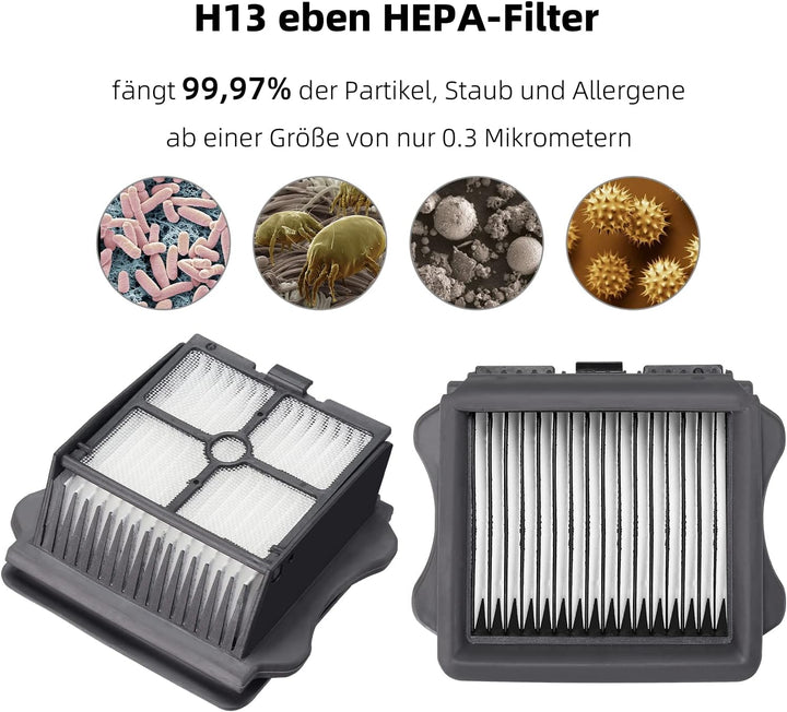 - 🔧【HEPA-Filter】Der H13-Filter fängt 99,97 % der Partikel, Staub und Allergene ab einer Grösse von nur 0,3 Mikrometern ein und entfernt grosse Schmutzpartikel, Staubpartikel, Tierhaare, Schimmelpilzsporen und Pollen, um Allergiker und Haustierbesitzer effektiver zu schützen.