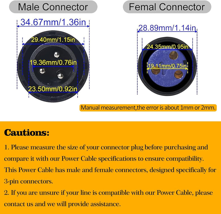 - 5 Meter (16,4 Fuss) lang. 3x2,5 mm2-Stromkabel. Wasserdichte Stecker und Buchsen an beiden Enden. Wird direkt nach dem Kauf verwendet. Wenn Sie länger sein möchten, können Sie mehr Kabel in Serie kaufen.