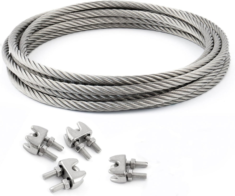5m DRAHTSEIL EDELSTAHLSEIL SET 6mm 7x7 + 4 Bügel 6mm V4A Stahlseil Inox VA Seil Rostfrei Klemmen
