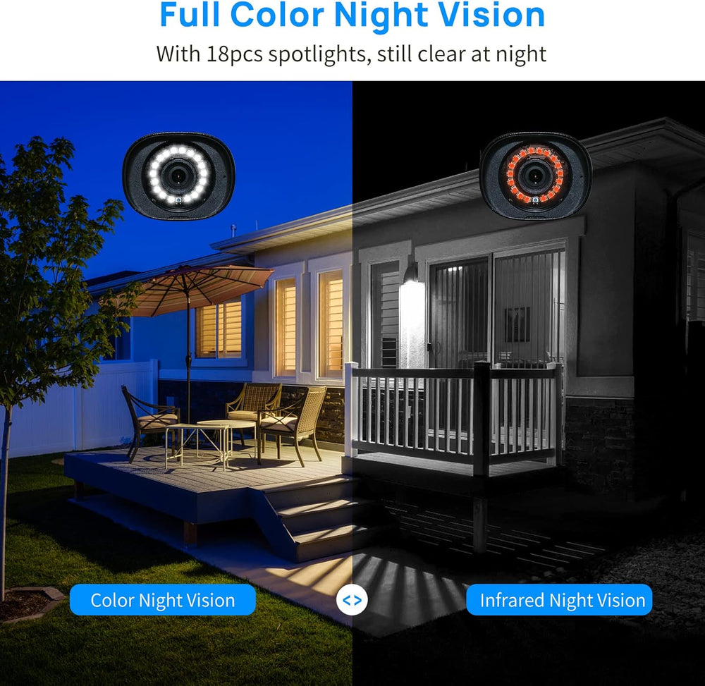 - 【Einfache Installation, Farbe Nachtsicht】Die Installation dieses Überwachungskamera-Sets ist sehr einfach und alle Kameras sind bereits ab Werk mit dem NVR gekoppelt. Die Kamera verfügt über ein Flutlicht mit automatischer Umschaltung und ist auch