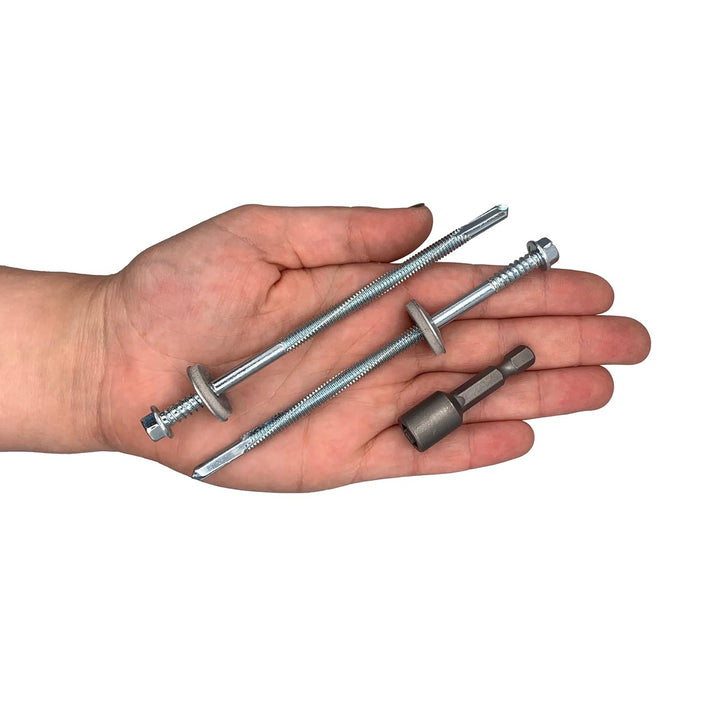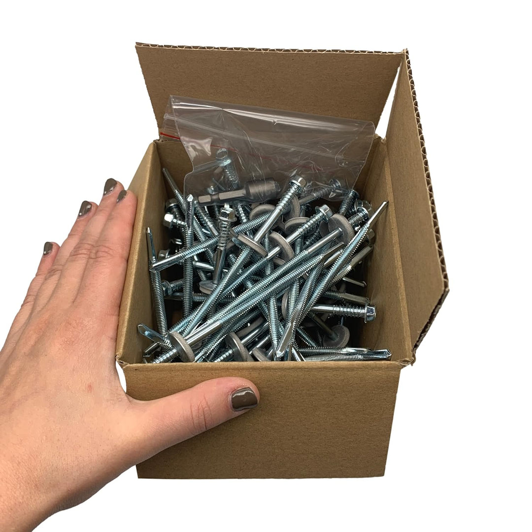 - ✔️ Sechskantschrauben Selbstbohrende Spitze Stahlscheiben mit EPDM (Durable Rubber) Diese Schrauben werden zur Befestigung von Sandwichplatten in Metallkonstruktionen verwendet. Unterlegscheibendurchmesser beträgt 19 mm. Bohrleistung bis 12 mm