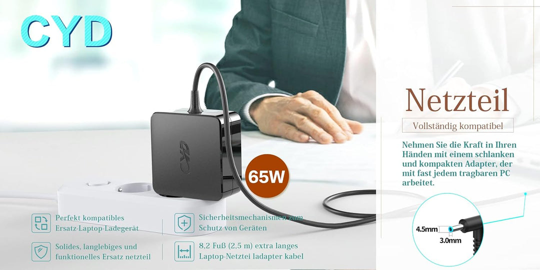 • ✅【Universal Notebook 8.2 Füsse (2.5m) Schnellere Ladungen ersetzen Adapter】CYD 65W AC adapter für Laptop Ladekabel HP Split Spectre 13 x2 x360 15-ap012dx 13t-m1000 13t-m000 13t-h200 13-m110dx 13-m110ca 13-m010dx 13-h211nr 13-h210dx 13-g110dx