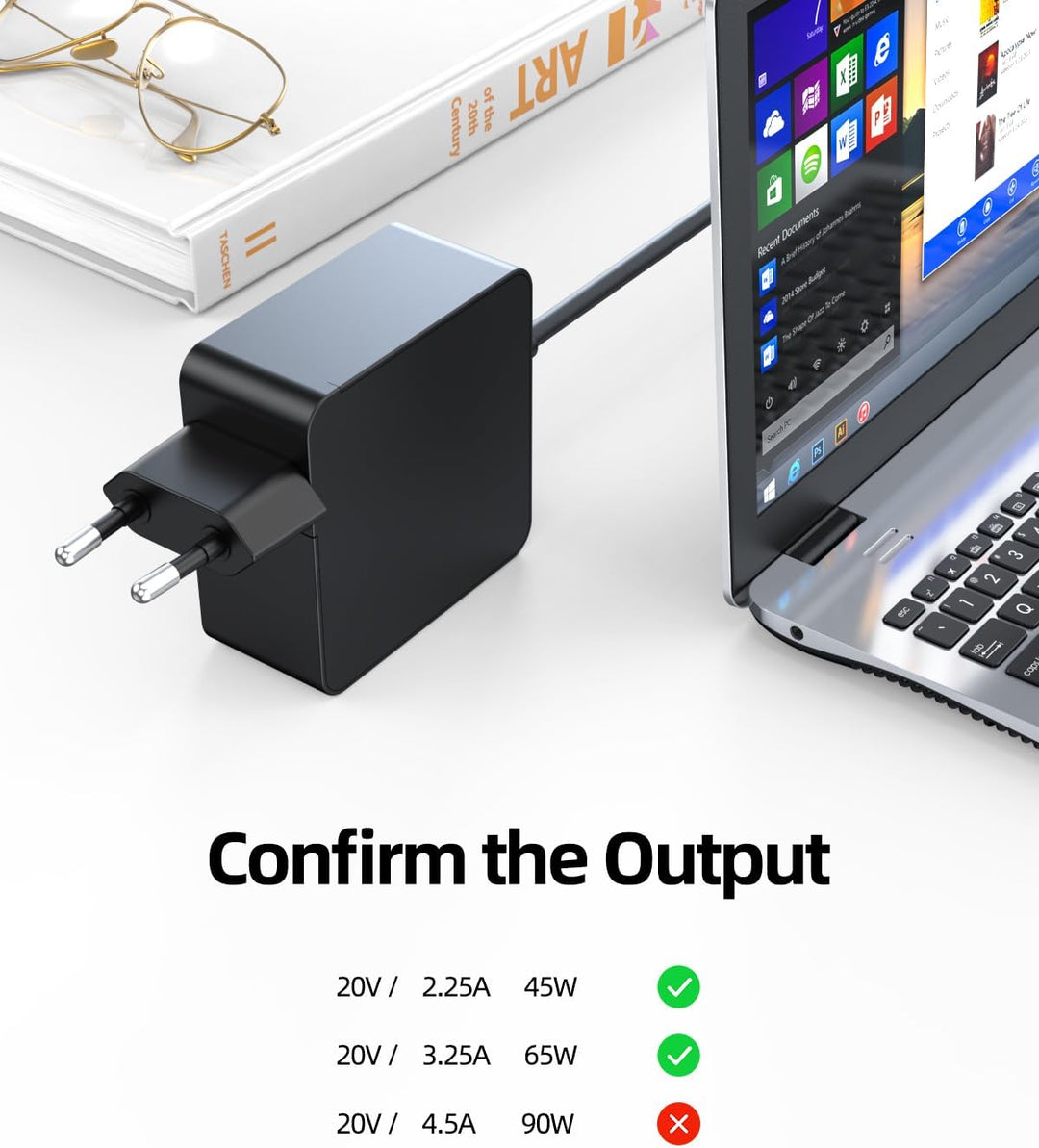 - Ausgang & Leistung: 20V-3,25A 65W (Funktioniert mit 20V-2,25A 45W laptop).