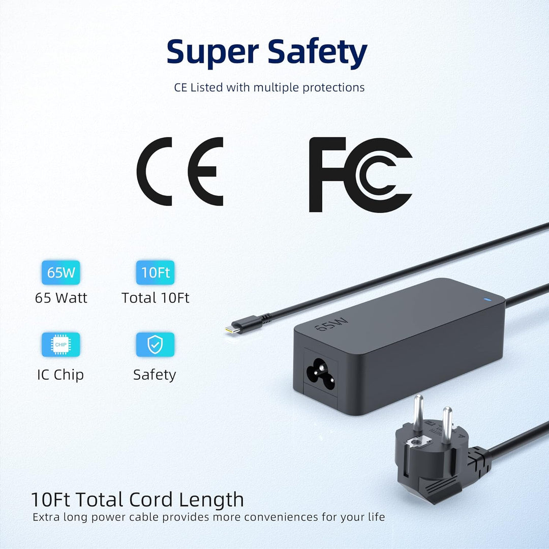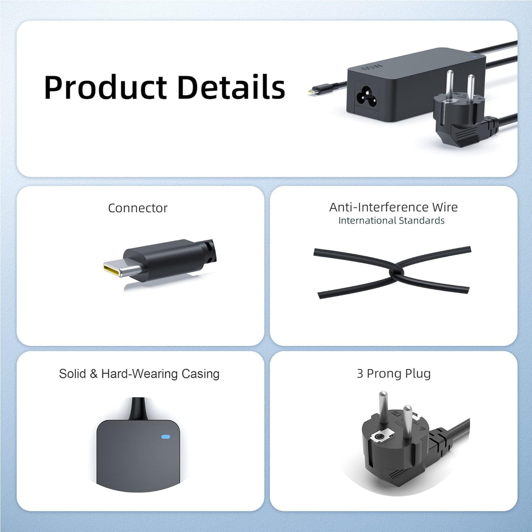 - Ausgang & Leistung: 20V-3,25A 65W (Funktioniert mit 20V-2,25A 45W Laptop).