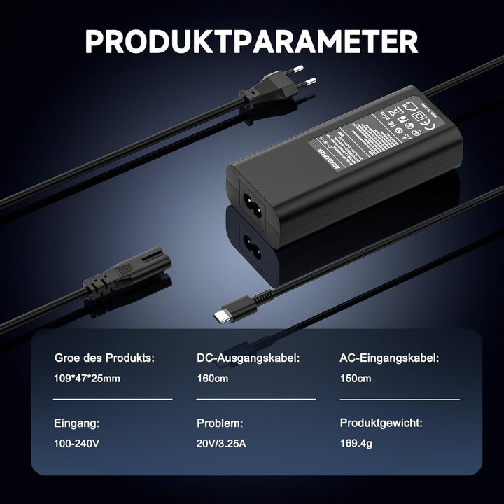 - 【Spezifikation】100~240V 50/60Hz; Ausgang: 20V 3.25A 65W max (45W kompatibel); Schnittstellentyp: USB C; Paketinhalt: 1 x 65W dell netzteil usb c, 1 x Benutzerhandbuch.