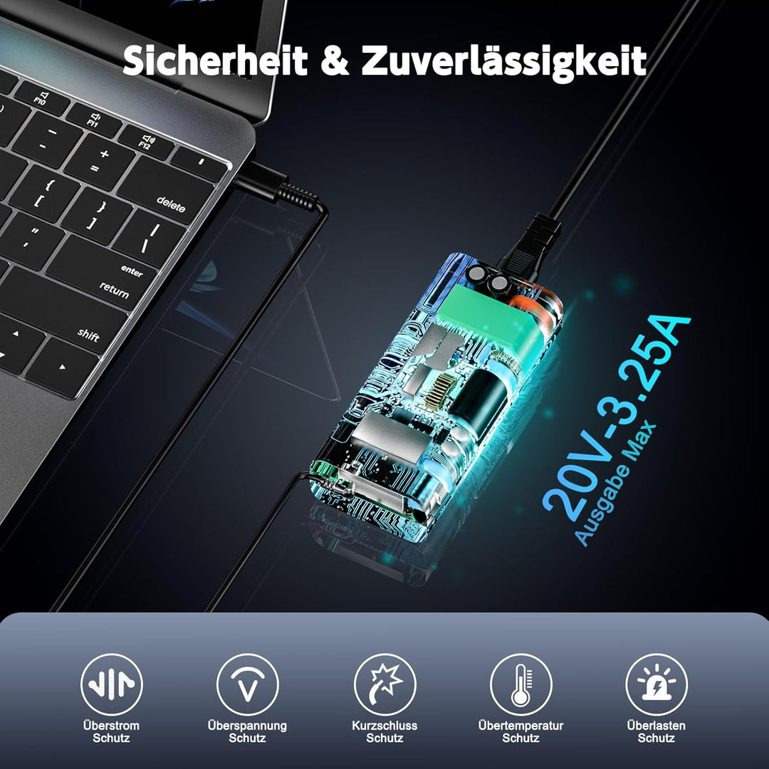 - 【Sicherheit und Eigenschaften】Das Ladekabel für Laptop DELL mit LED-Leuchten ist leicht und nimmt wenig Platz ein. Dieses Netzteil ist mit verschiedenen Modellen von Dell Computern kompatibel. Dieses 65W USB-C Laptop-Ladegerät ist