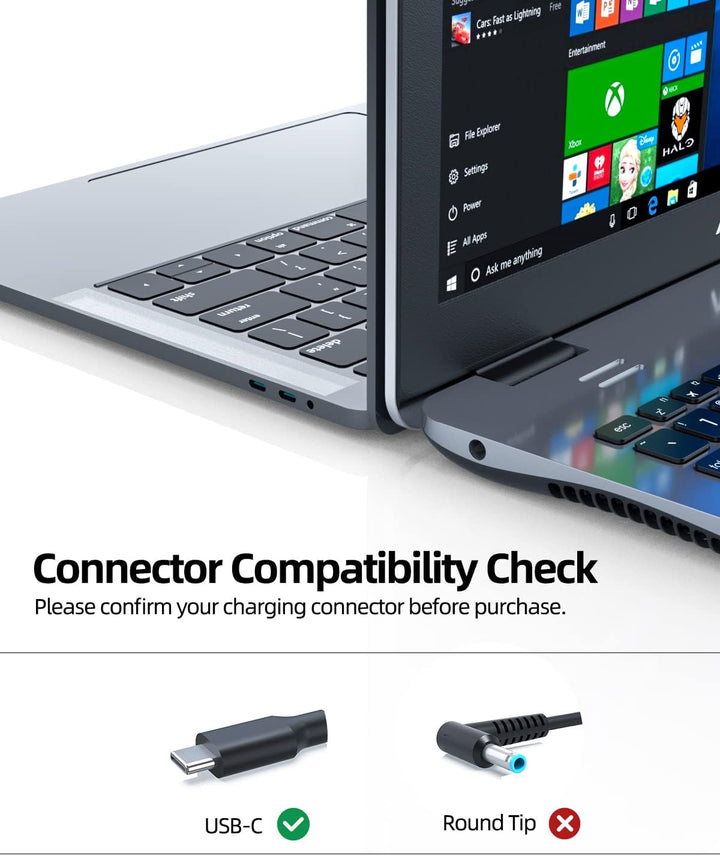 - Ausgang & Leistung: 20V-3,25A 65W (Funktioniert mit 20V-2,25A 45W Laptop).
