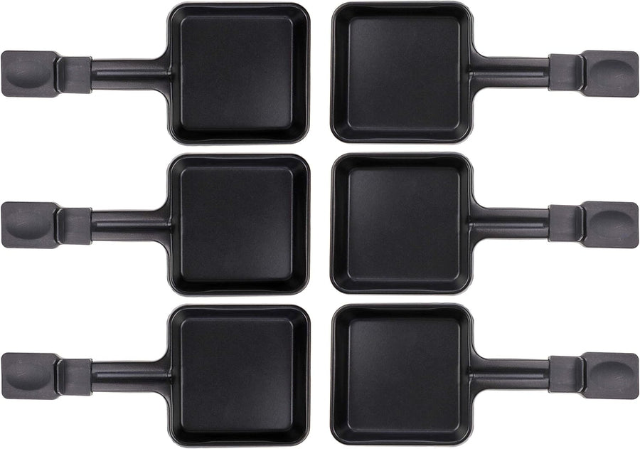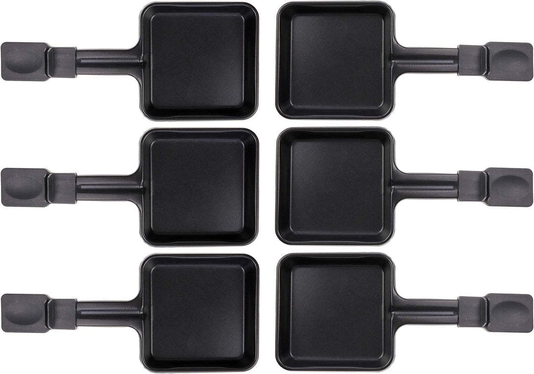 6x Raclette Pfännchen 23178 10x10cm, Griff Extra Lang, Universell für Raclettes (Masse siehe Text)