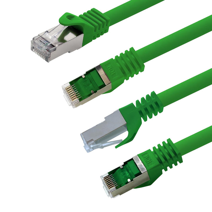 - Cat.7 Ethernet Kabel Netzwerkkabel (Rohkabel) doppelt geschirmt PIMF (Paare in Metal Folie) und zusätzlich Metallgeflecht Patch-Kabel 2 RJ-45 Stecker CAT 6a Stecker mit Knickschutzhülle vergoldete Kontakte