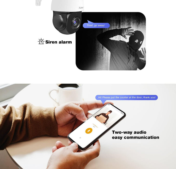 - 18-fach optischer Zoom für bestes Bild auch beim Vergrössern • Extrahohe 2K-Auflösung mit 2560 x 1440 Pixeln (WQHD) • Riesiges 360°-Sichtfeld dank Pan-Tilt-Funktion • Integrierte Sirene mit 85 dB lautem Alarm • Kostenlose App ELESION für