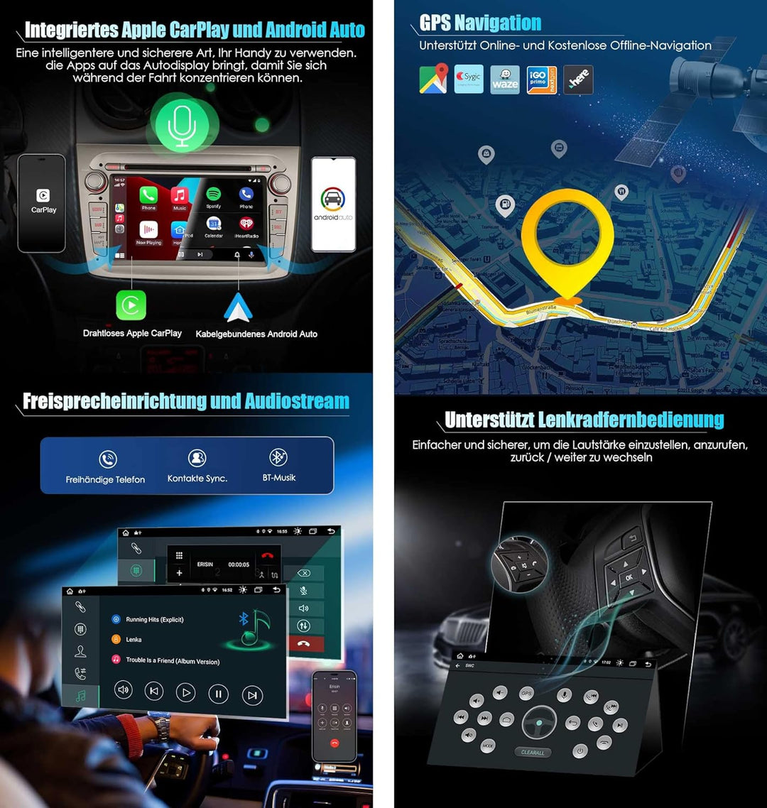 - 【Carpaly & Android Auto & DSP】✔ Verbinden Sie Ihr iPhone per Bluetooth / Ihr Android-Telefon per USB mit diesem Autoradio, um unterwegs auf GPS, Anrufe und Musik von Mobiltelefonen zuzugreifen. Integrieren Sie Ihr Telefon nahtlos, um es auf dem