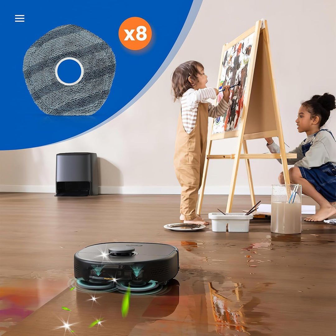 - 🎁【Was Sie bekommen】8 mitgelieferte Reinigungspads reichen für 8–12 Monate. Durch regelmässiges Waschen und Ersetzen der Pads bleibt die optimale Leistung Ihres Saugroboters erhalten.