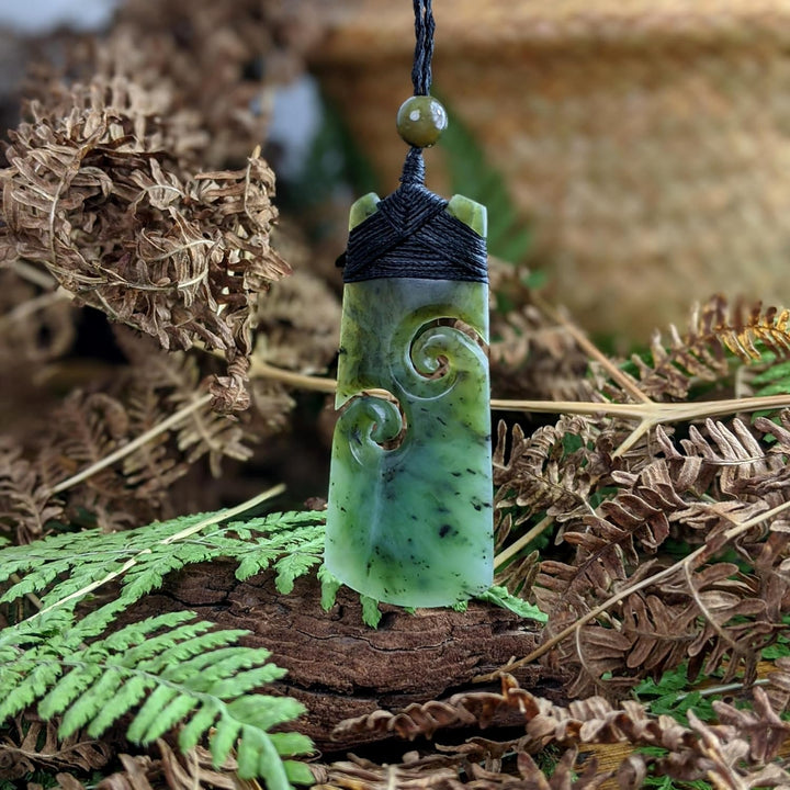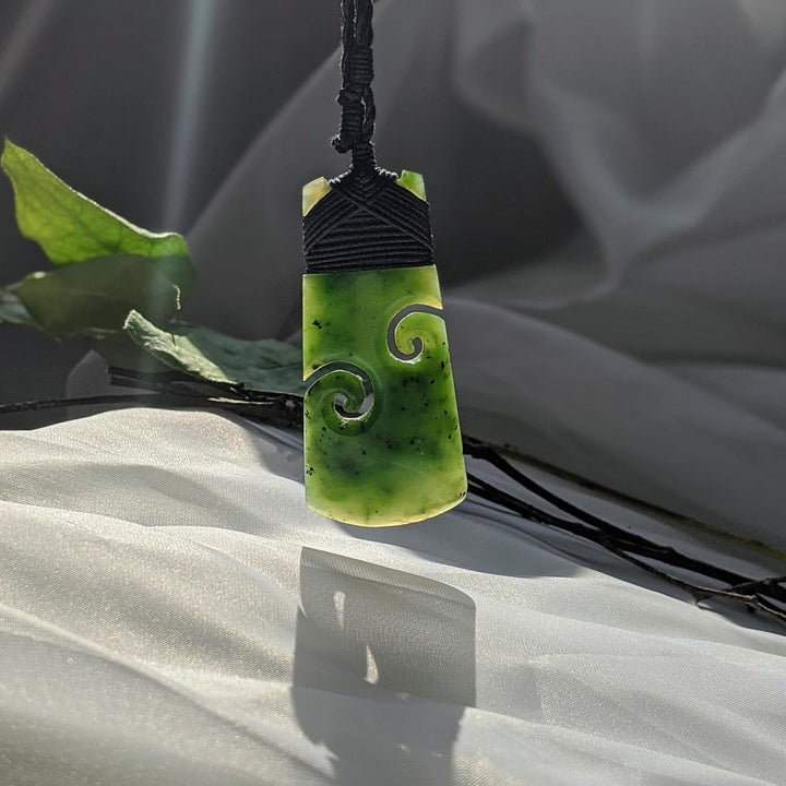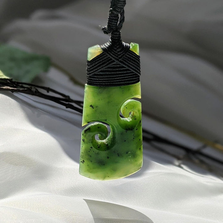 81stgeneration Unisex Geschnitzte Nephrit Jade Grünstein Maori Doppel Koru Toki Anhänger Halskette