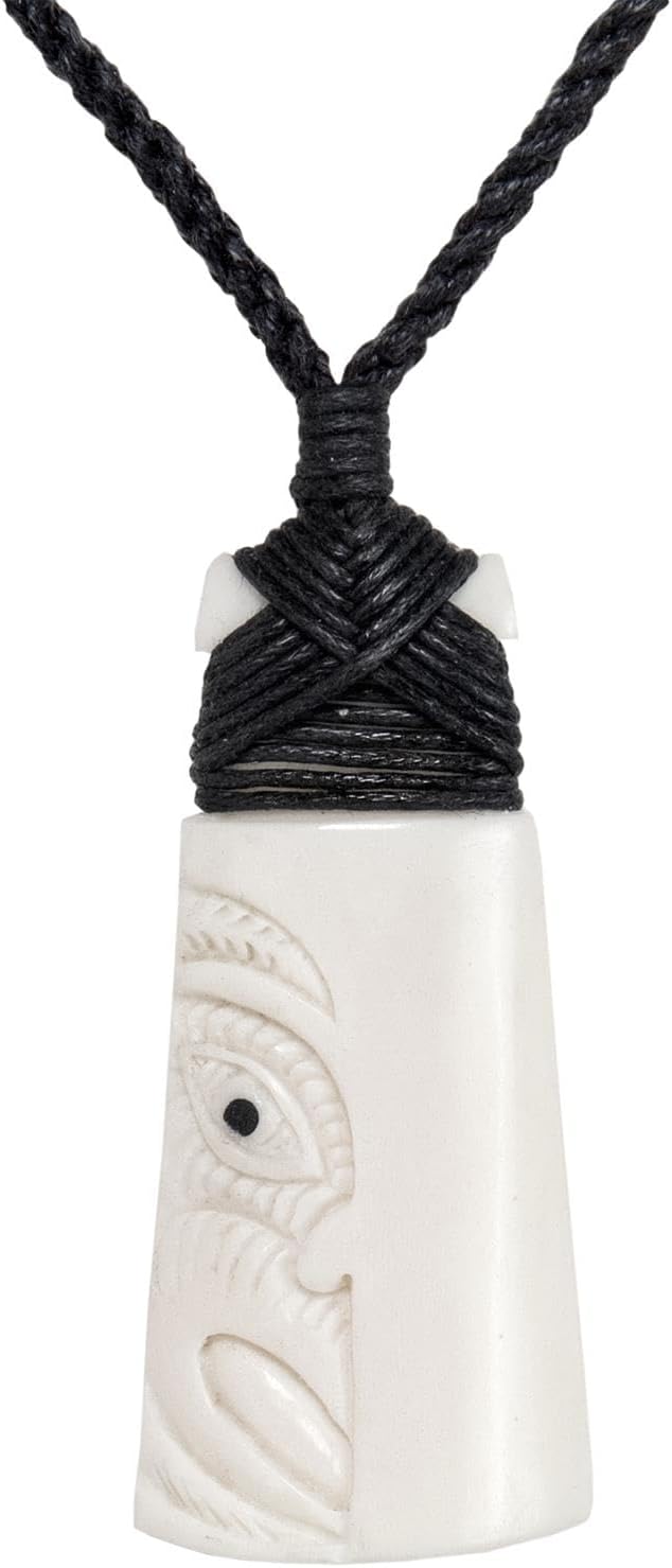 81stgeneration Unisex Geschnitzter Knochen Gravierter Maori Kriegergesicht Toki Anhänger Halskette