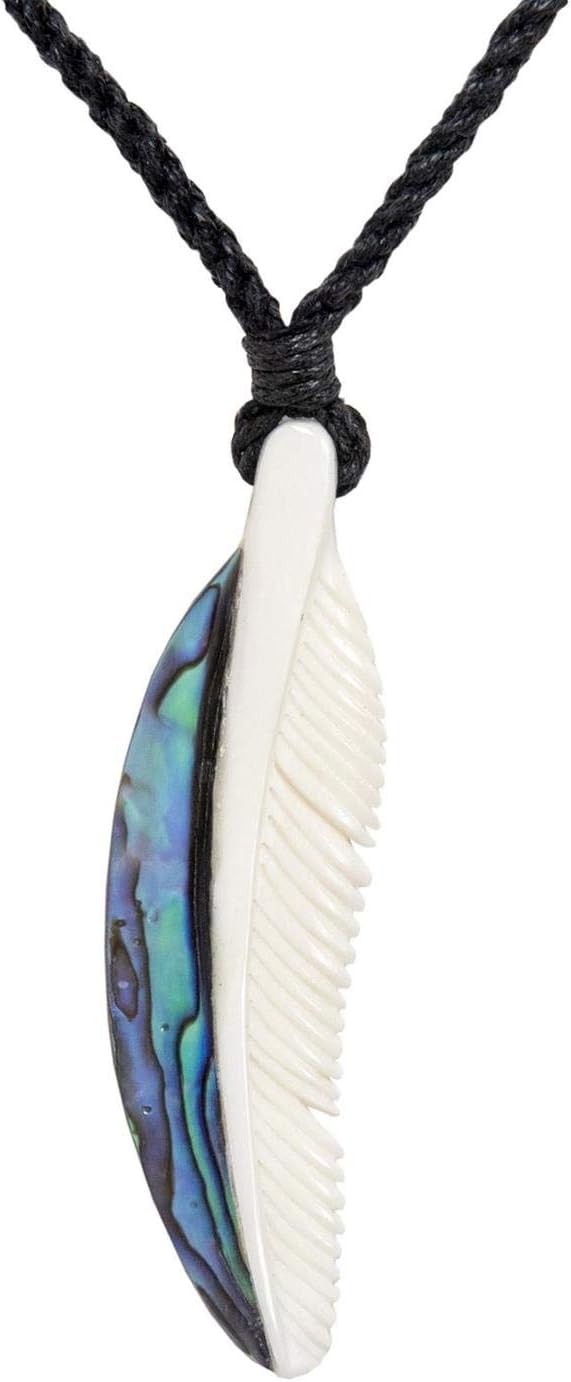 81stgeneration Unisex Geschnitzter Knochen Paua Abalone HEI Heru Anahera Feder Anhänger Halskette