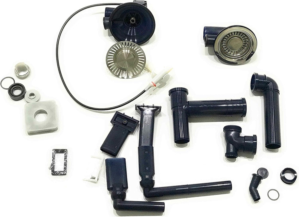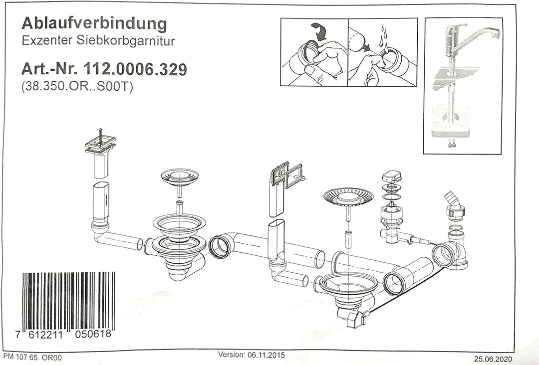 - Die passende Ab- und Überlaufgarnitur 3 1/2 Zoll mit Sibekorb -/Excenterventil für die Franke Spüle 1 1/2 Becken AKX 654 / Active Kitchen 654 mit Integralablauf.
