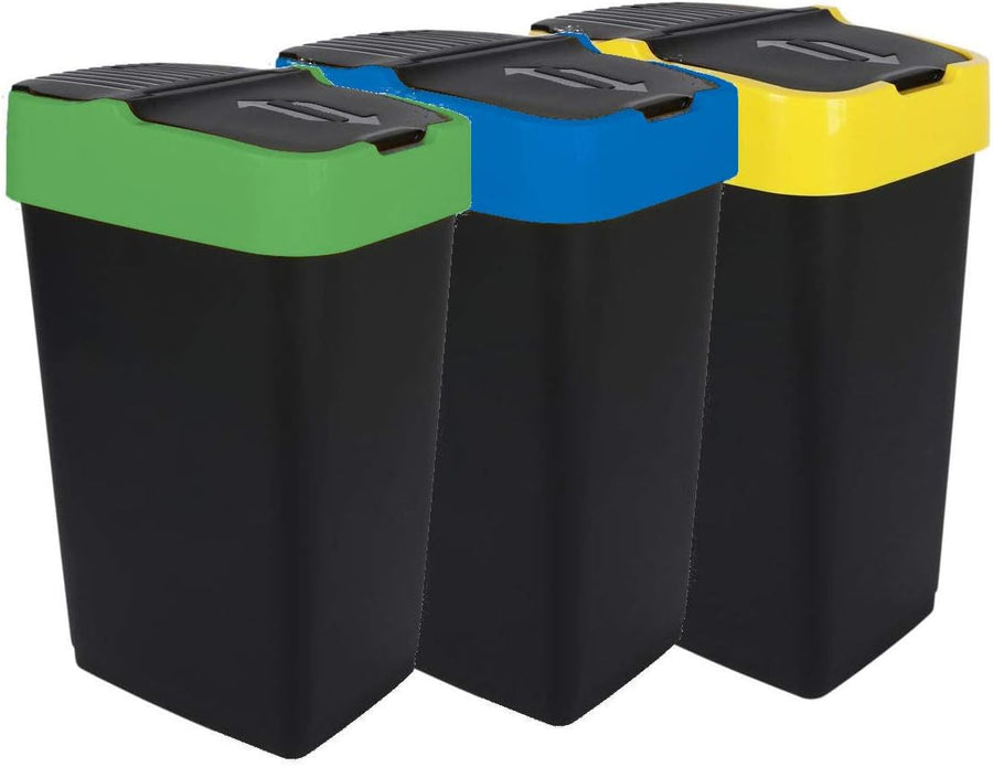 Abfalleimer mit Schwingdeckel - 3er Set - 60 L - Mülleimer Abfallbehälter Abfallsammler 60 Liter (3