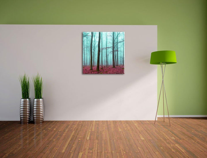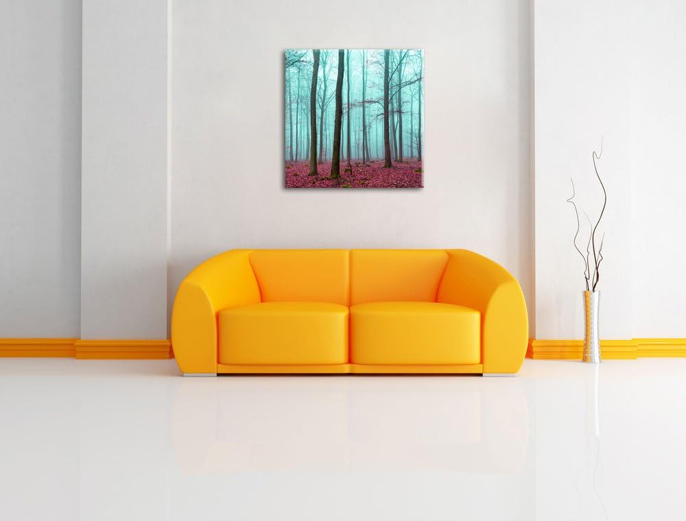 abstrakter Wald, Format: 70x70 auf Leinwand, XXL riesige Bilder fertig gerahmt mit Keilrahmen, Kunst
