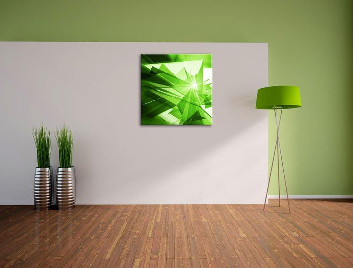 Abstrakt grünes Eis, Format: 70x70 auf Leinwand, XXL riesige Bilder fertig gerahmt mit Keilrahmen, K