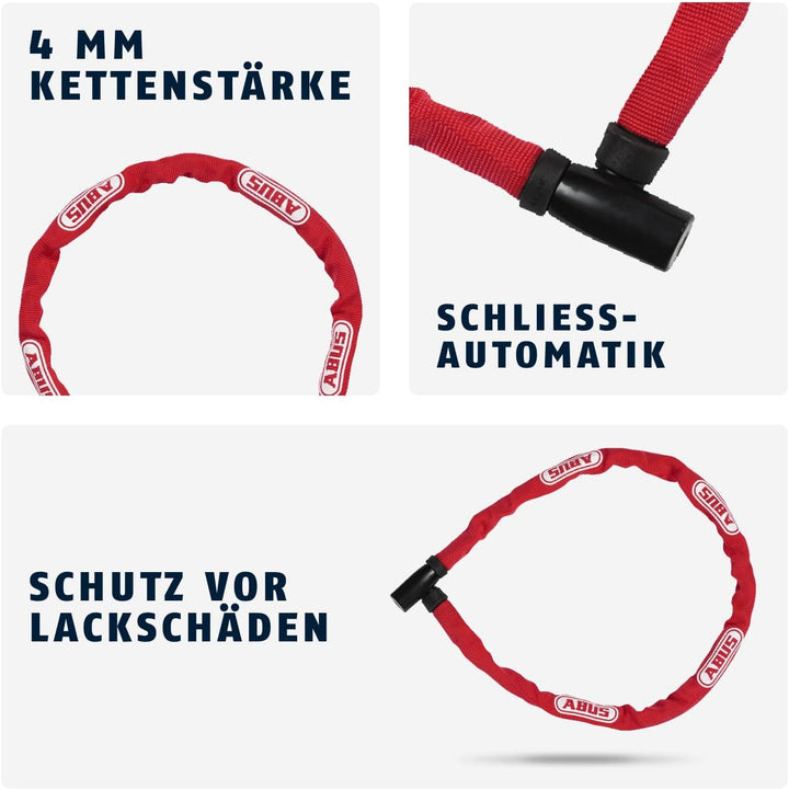 - Fahrradschloss mit ABUS-Sicherheitslevel 4: Das leichte Kettenschloss bietet hervorragenden Schutz dank seiner 4 mm dicken Stahlkette und ist schnell und flexibel einsetzbar