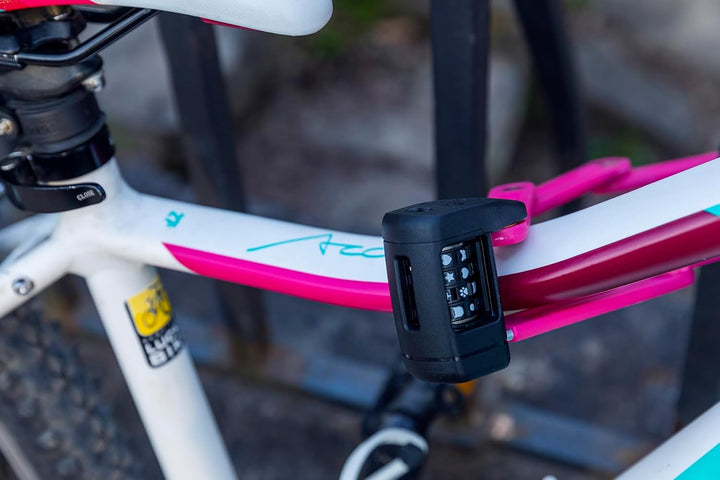 - DETAILS: Fahrradschloss für Mädchen und Jungen - ausgeklappte Länge 60 cm, Gewicht 460 g, Farbe Pink, schlüssellos, Made in Germany