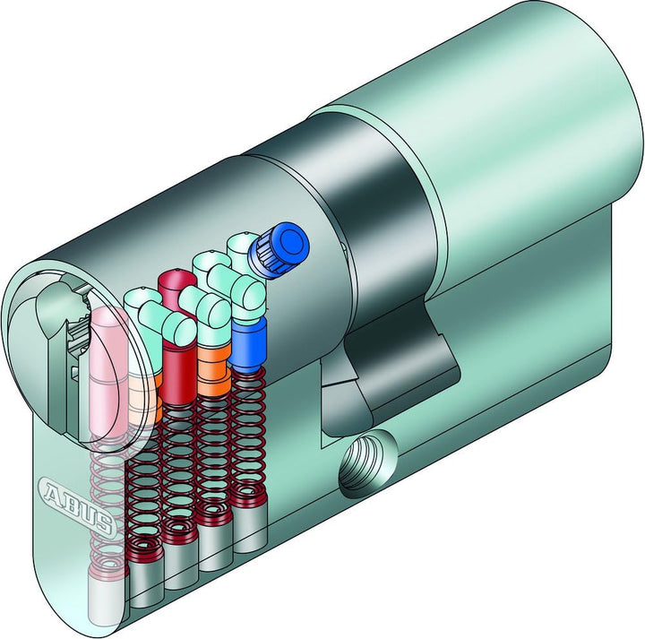 - Hochwertiges Schliesssystem mit acht unabhängigen Schliesselementen in zwei Stiftebenen
