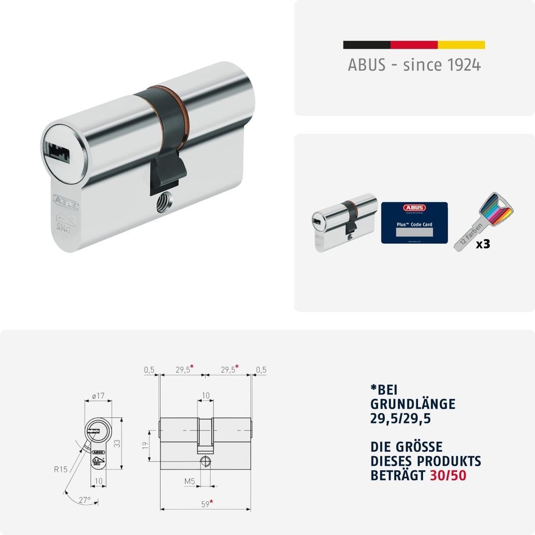 ABUS Profilzylinder XP20SN 30/50 inklusive Sicherungskarte & 3 Schlüsseln, 73719, 30/50