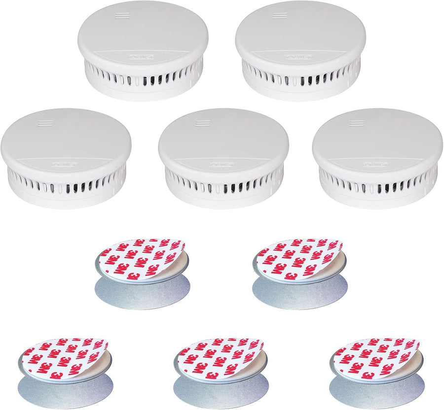 ABUS Rauchmelder RWM150 - 5er Set + Magnethalter - langlebige 10-Jahres-Batterie - für Wohnräume und